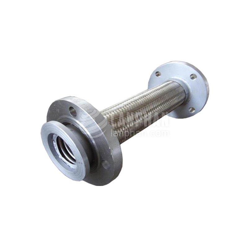 Stainless steel flexible hose is woven from stainless steel bellows, one or more layers steel wire or strip net at both ends with a connector or flange head for flexible components to transport all kinds of media.